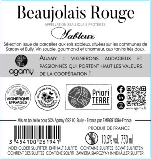 Issue des meilleurs terroirs sableux et travaillée en agriculture raisonnée, cette cuvée est vinifié en méthode traditionnelle en cuves inox et avec une maitrise des températures pendant toute la cuvaison (6 jours). Sa robe rubis et son nez gourmand de cassis et framboise donne un vin souple et equilibré. Une bouche très fruitée avec une grande persistance aromatique. Idéal avec les spécialités lyonnaises telles que cervelles de canuts, tablier de sapeur mais aussi avec des viandes blanches grillées ou même des poissons cuisinés. Température de service 14°C et potentiel de garde d’un an.