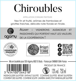Chiroubles, appellation élégante et fruité, ce 100% gamay pourra être mis autant sur vos apéritfs que sur vos repas.