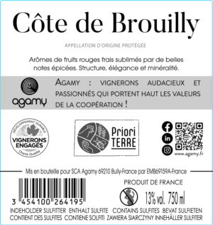 Robe rouge et dense. Nez aux notes de petits fruits rouges. Bouche corsée, relevée par des arômes de fruits frais et de baies rouges. Accord parfait avec des charcuteries, civets de lapin et viandes rouges en sauce. Se conserve très bien 3 ans. Température de service 14°C.