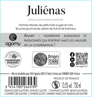 Robe rouge rubis profond. Nez sur des petits fruits rouges et noirs. Bouche sur des arômes de mûre et touche épicée et légèrement poivrée. Fine charpente et tannins déjà soyeux.